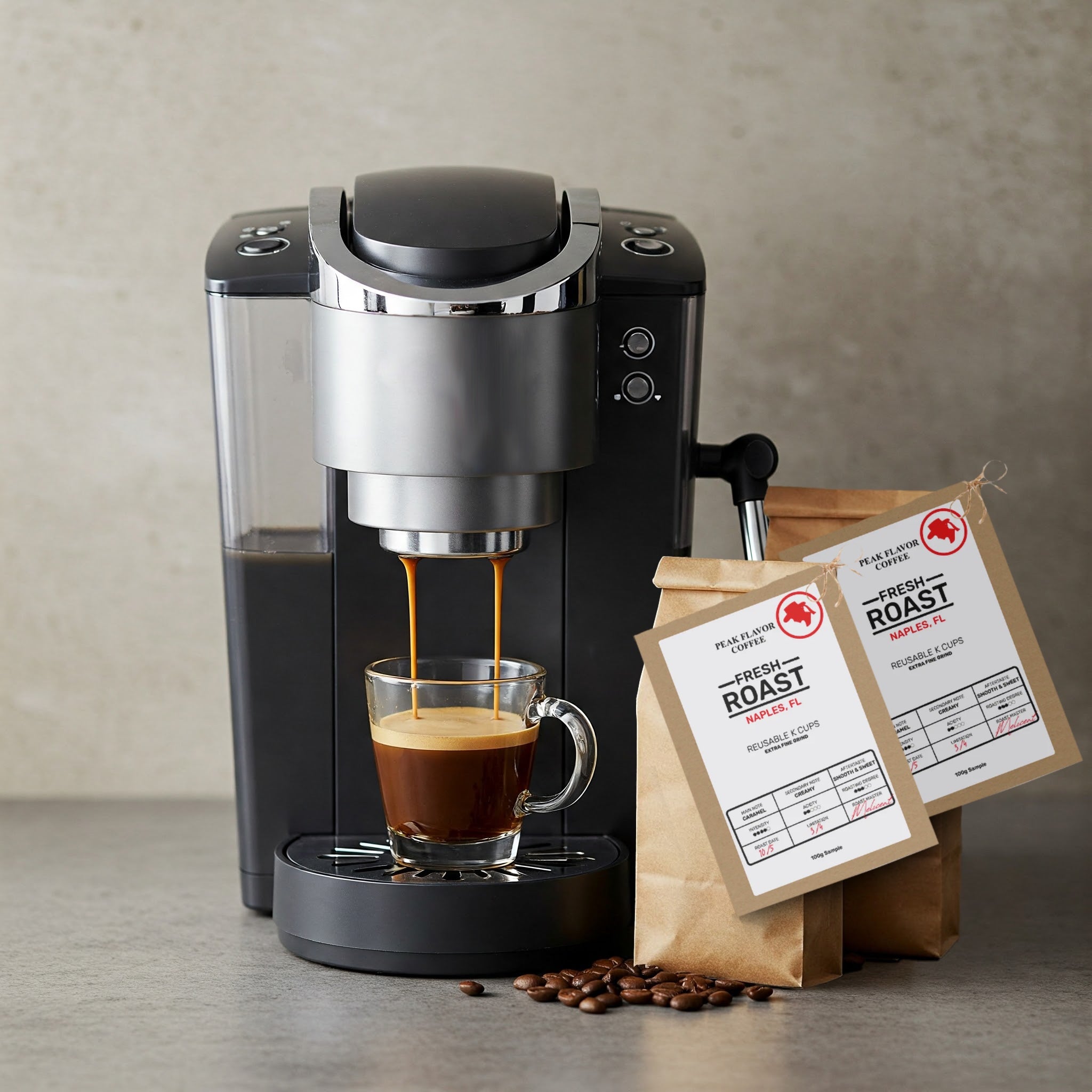 Unlike store-bought, pre-packaged coffee pods that sit for months, Peak Flavor coffee is roasted-to-order and precision-ground for reusable K Cups. That means every cup you brew is packed with vibrant aroma, natural sweetness, and full-bodied flavor — not the bland, lifeless taste of pre-filled K Cups.